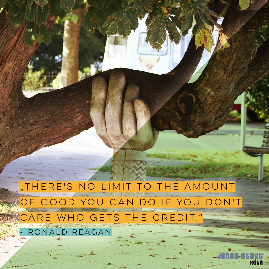 Hinter junge Stadt Köln stehen unzählige Menschen, die nicht im Rampenlicht stehen, sondern im Hintergrund mitmischen - und gerade damit einen unfassbar wertvollen Beitrag leisten! Mit diesem Zitat von Ronald Reagan möchten wir allen, die uns hinter den Kulissen unterstützen, ein ganz besonderes Dankeschön aussprechen: Ohne Eure Unterstützung wären junge Stadt Köln und die verschiedenen Projektgruppen nicht denkbar!