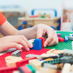 Aus alten Lego-Steinen werden kleine mobile Rampen, mit den Rollstuhlfahrer*innen eine Stufe überwinden können.